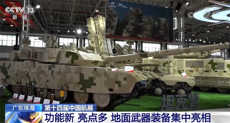 總臺(tái)央視記者 吳天白:我們可以看到,本屆航展兵器館裝備的排列不再是同類型裝備相鄰排列,履帶式的坦克就會(huì)搭配輪式無人車,而輪式裝甲車就會(huì)配備履帶式無人車進(jìn)行輔助,采用了一種“輪履結(jié)合”的組合形式。