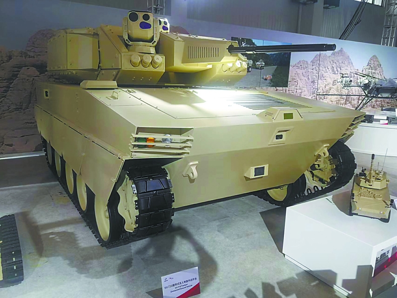 相比各種無(wú)人機(jī)和巡飛彈,珠海航展上的無(wú)人地面作戰(zhàn)車(chē)輛在作戰(zhàn)性能上也毫不遜色。除了VT-5U輕型坦克可以臨時(shí)客串“無(wú)人坦克”外,兵器工業(yè)集團(tuán)的VU-T10履帶式無(wú)人地面作戰(zhàn)平臺(tái)也堪稱(chēng)重型無(wú)人車(chē)輛。VU-T10主要針對(duì)城市環(huán)境作戰(zhàn),選擇采用厚重的履帶式底盤(pán),配備有30毫米口徑遙控武器站,未來(lái)還可以根據(jù)需要配備4枚“紅箭-12”反坦克導(dǎo)彈,加載7.62毫米機(jī)槍?zhuān)湮淦髋鋫涞呢S富程度相比俄羅斯BMPT“終結(jié)者”火力支援車(chē)也不遜色,卻沒(méi)有了后者在巷戰(zhàn)中可能遭遇人員傷亡的風(fēng)險(xiǎn)。
