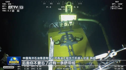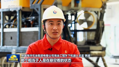 中國(guó)海洋石油集團(tuán)有限公司海油工程水下機(jī)器人總監(jiān) 韓超:你的手腳要并用,然后你要在抓的同時(shí),后面你不要忘了還有一條臍帶纜是連著你的。你再稍微一用力,那通訊要不然斷了,要不然就絕緣報(bào)警。