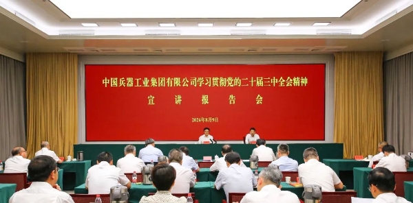 8月9日,中國兵器工業(yè)集團有限公司黨組舉辦學(xué)習(xí)貫徹黨的二十屆三中全會精神宣講報告會,第二十屆中央委員、中央黨史和文獻研究院院長曲青山作宣講報告,集團公司黨組書記、董事長程福波主持報告會。